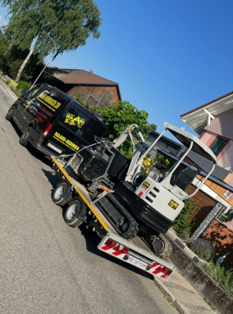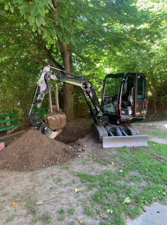 Falls Sie die Ausführung Ihres Projekts nicht selbst übernehmen möchten, stehen wir Ihnen gerne mit Erfahrung und Technik zur Seite. Ob im Garten, auf der Baustelle oder bei Erdarbeiten: Wir unterstützen Sie zuverlässig bei der Realisierung: Von der Planung bis zur Umsetzung.